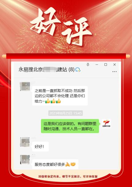 客户反馈:以前服务的公司很多事情都不管,找了永易搜建站服务态度比以前的公司好很多